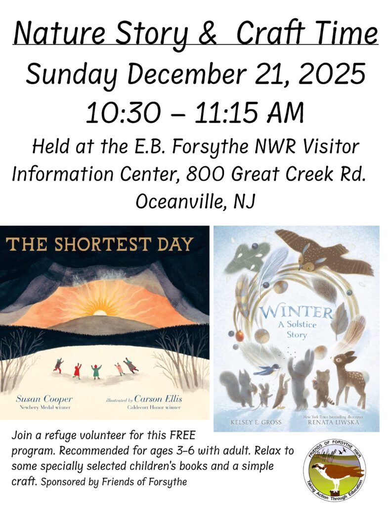The Nature Store, operated by the Friends of Forsythe, is located in the Visitor Information Center. It is open the same hours as the Center. There are many interesting items available for purchase. All profits from Nature Store sales directly benefit Refuge programs.